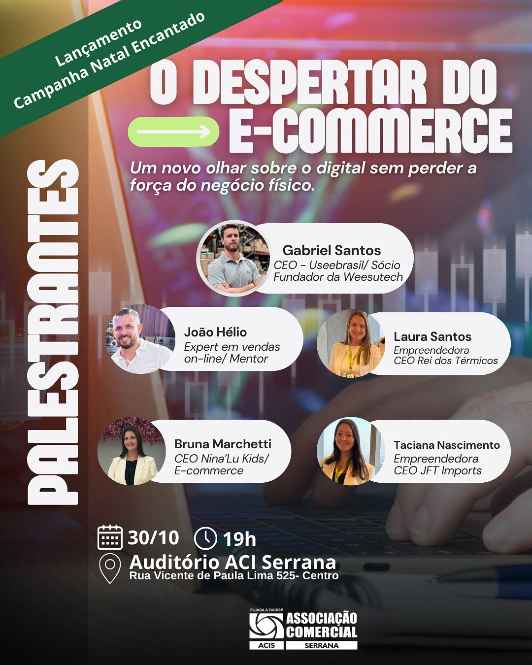 📍 Auditório da ACI Serrana – Rua Vicente de Paula Lima, 525, Sobre Loja